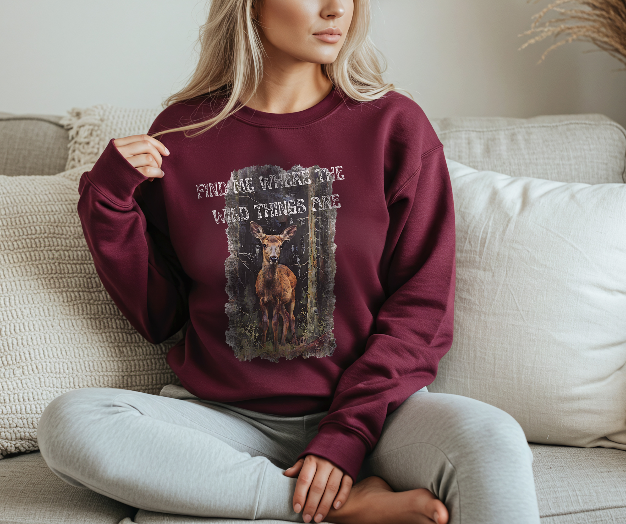 Crewneck - Find Me Where the Wild Things Are - Deer Forest Design