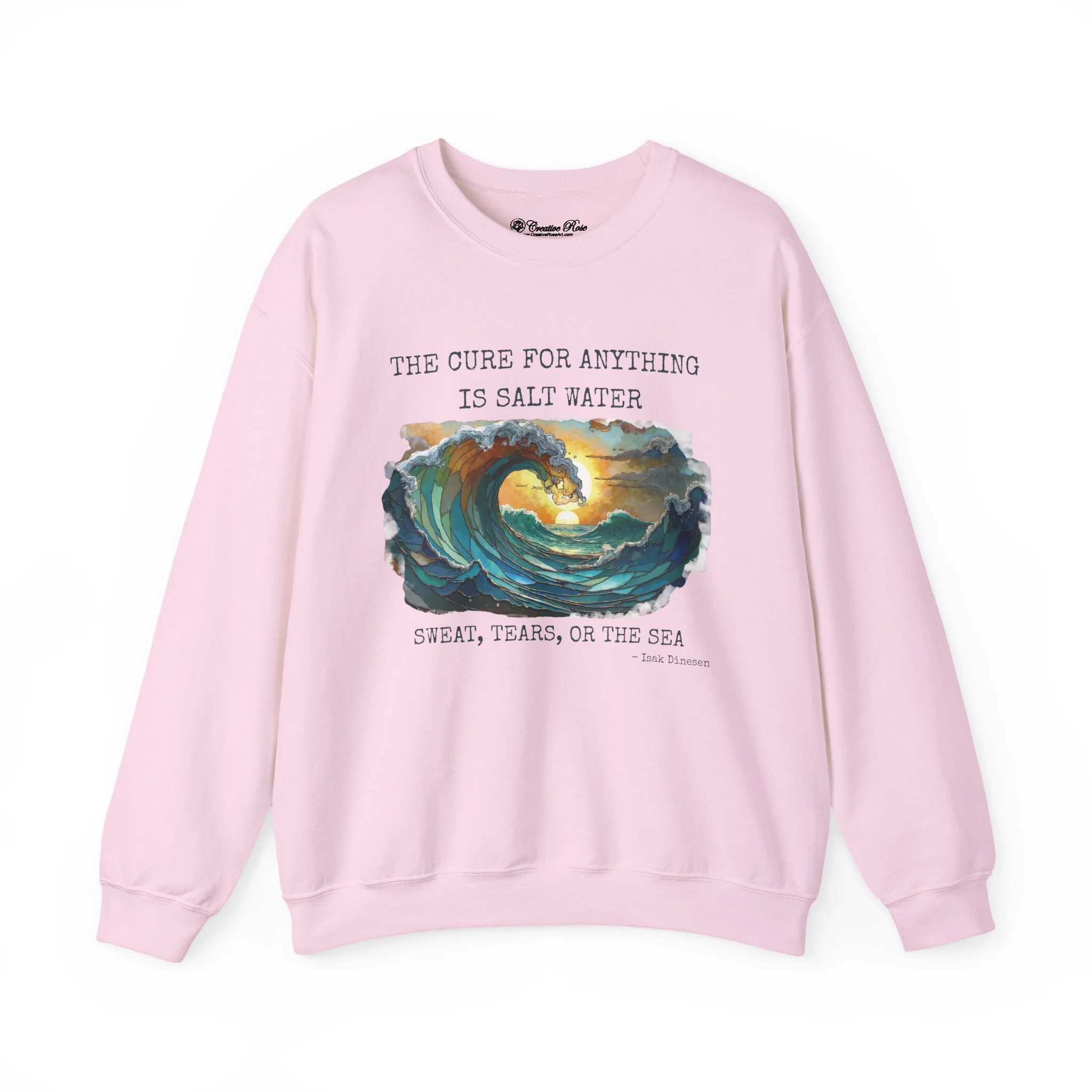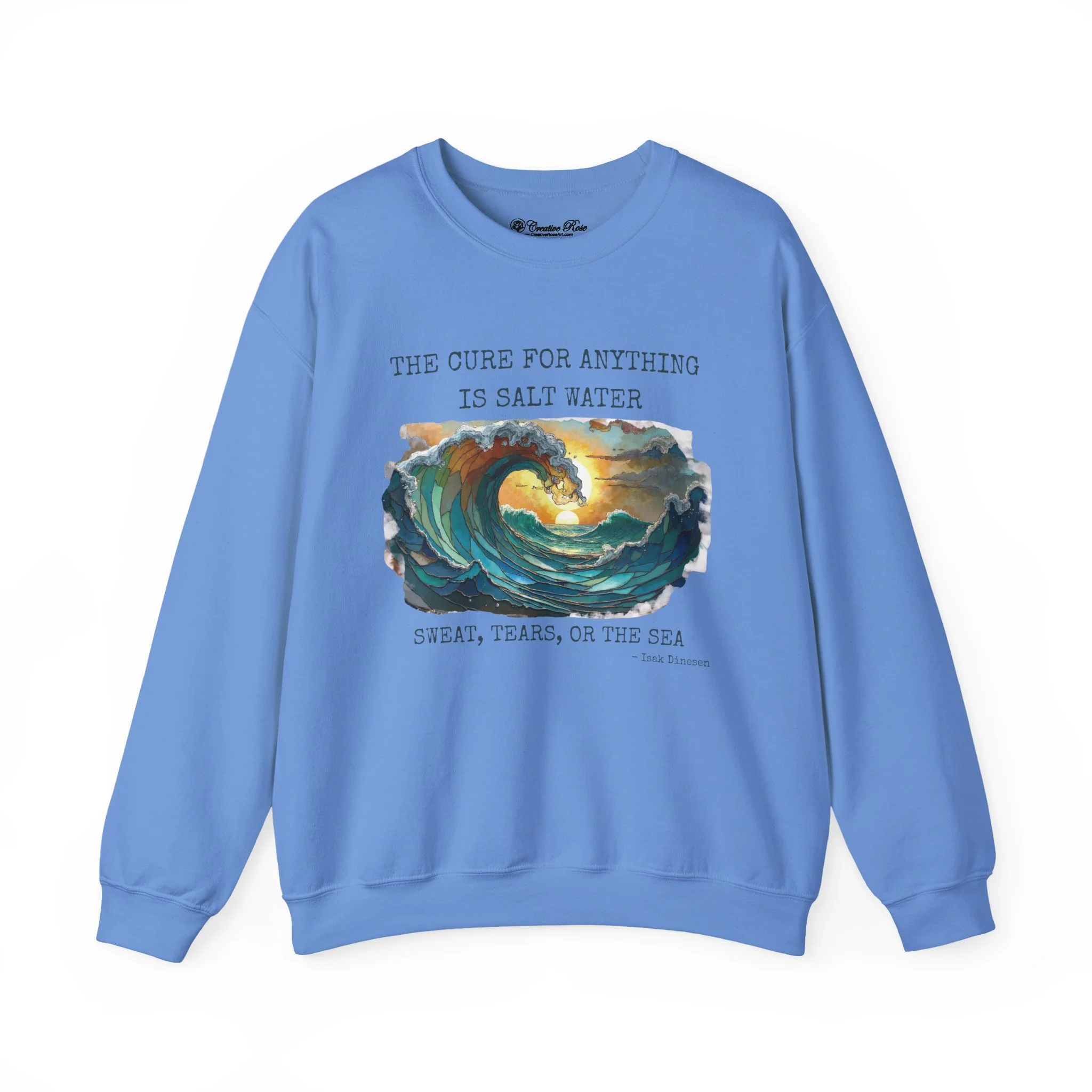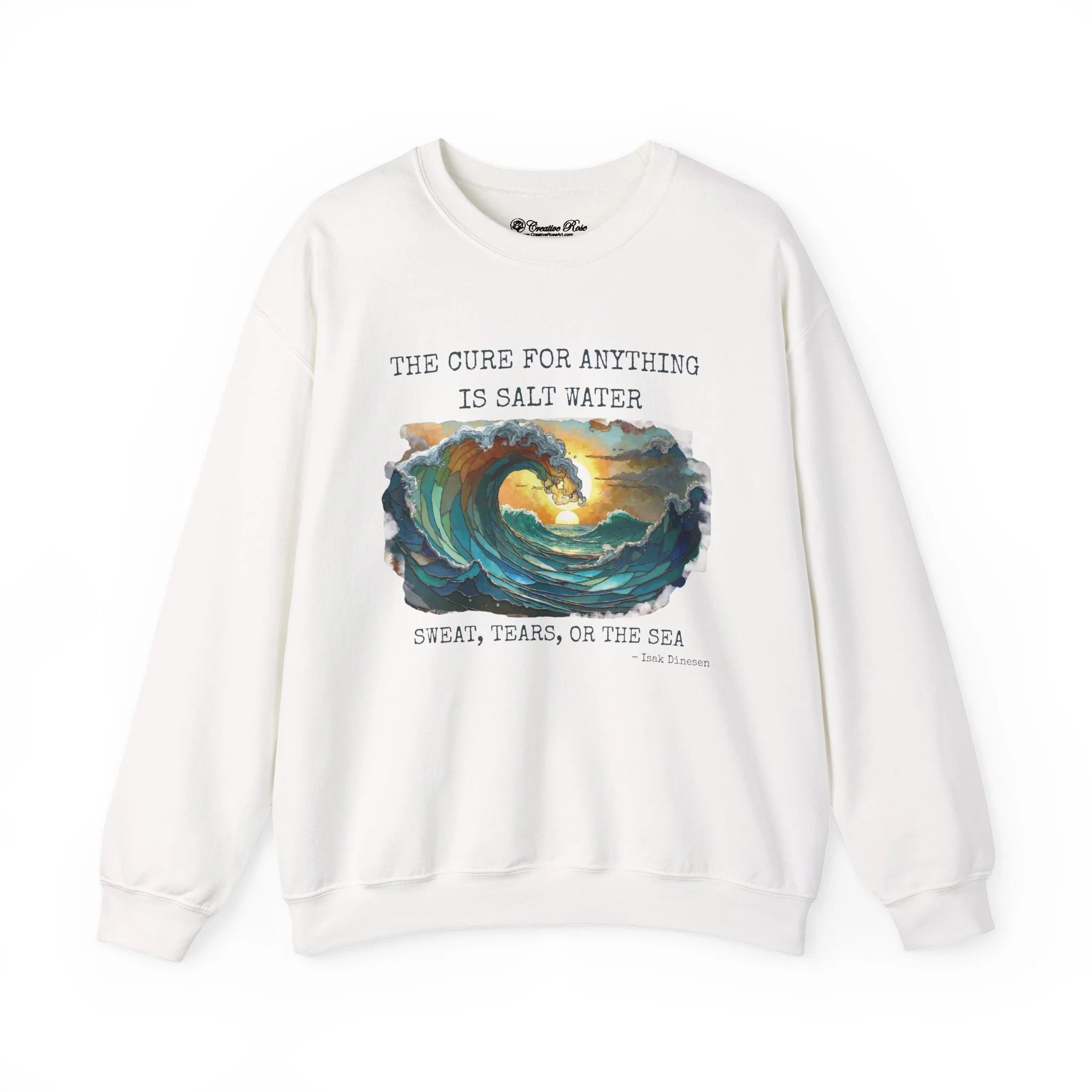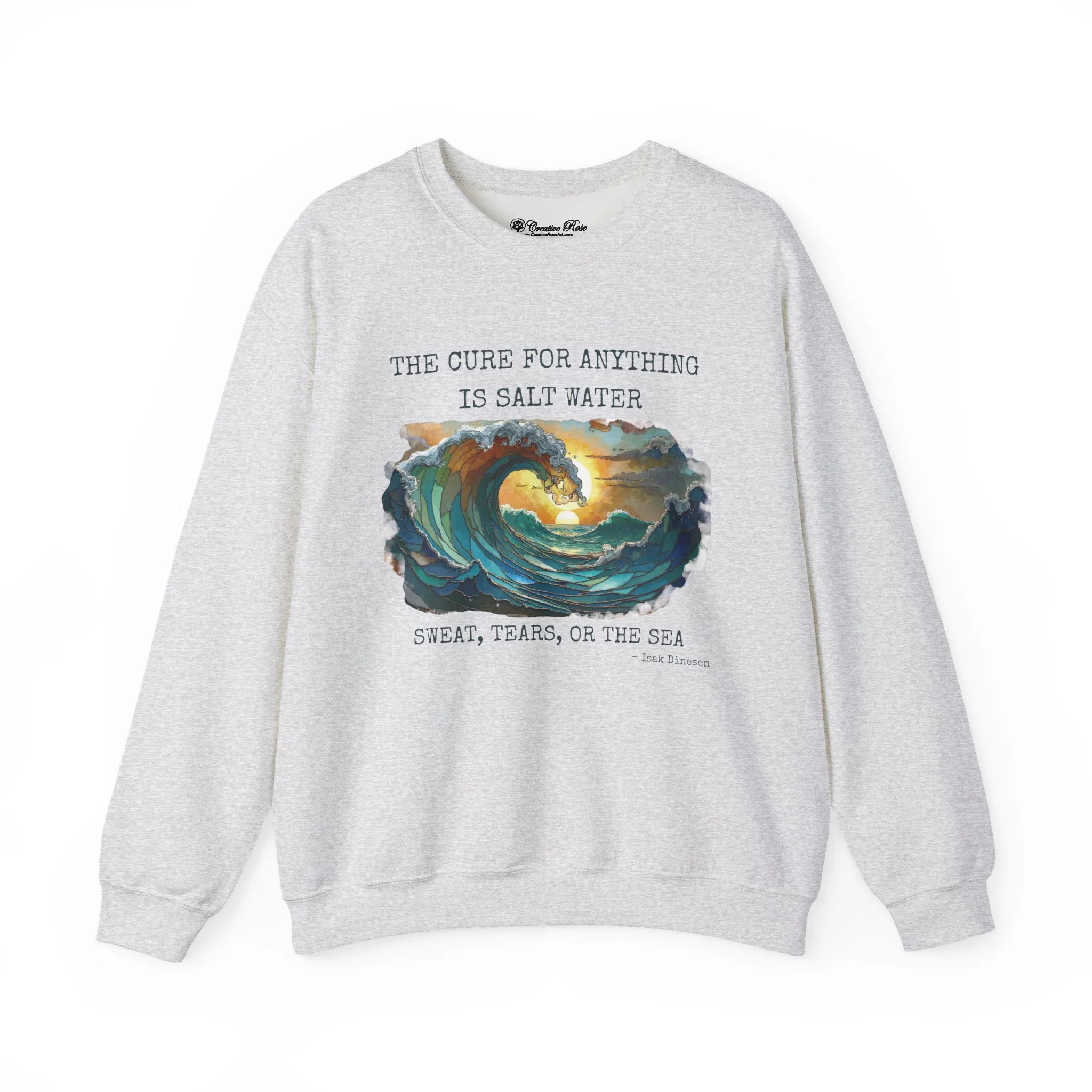 This cozy crewneck channels the restorative properties of salt water. Representing that life comes & goes in waves. “The cure for anything is salt water: sweat, tears, or the sea,” Reminds you that you have all the tools necessary to ride the waves and heal yourself in the process. The 50/50 cotton-poly blend and ribbed collar give it a lived-in comfort while the clean, classic silhouette keeps the look effortless. Wear it on foggy mornings, after a long swim, or curled up with a book — it’s made to feel like a soft embrace for anyone who finds clarity through salt water.